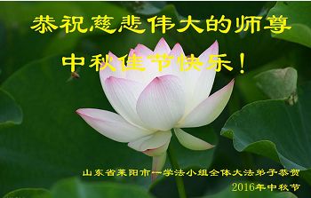 山東省煙台市萊陽市一學法小組四位大法弟子叩拜恭祝慈悲偉大的師尊中秋佳節快樂!