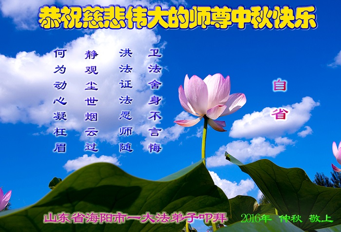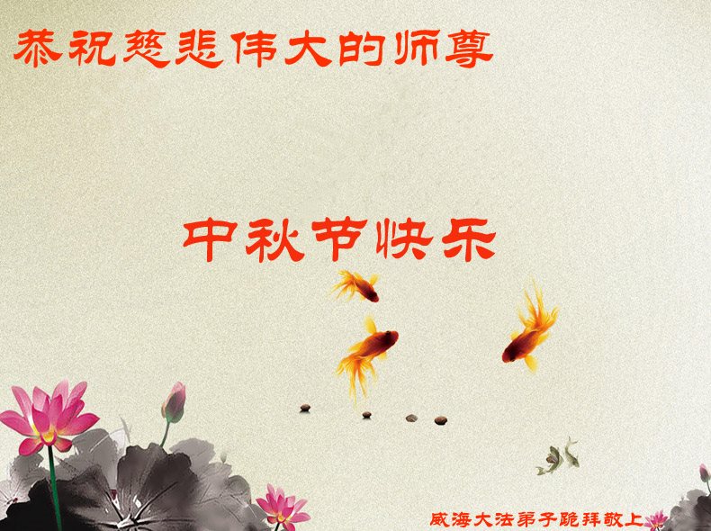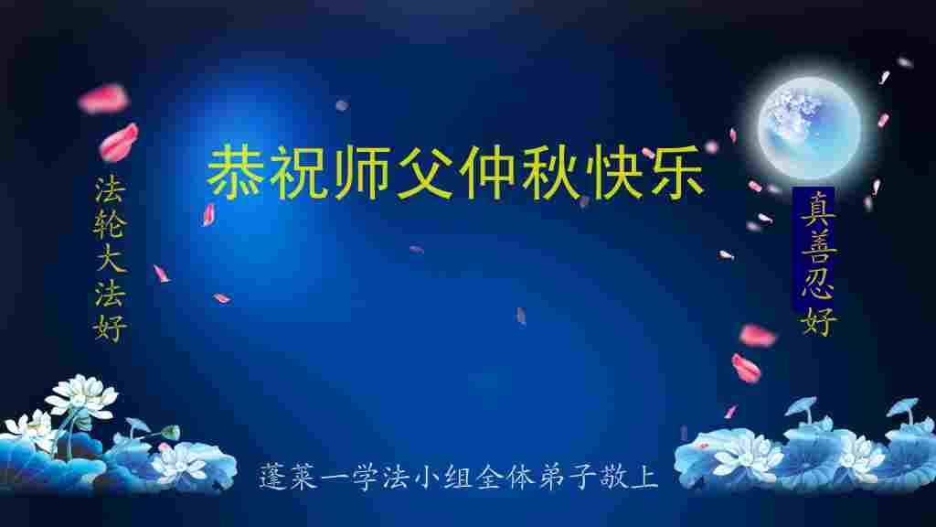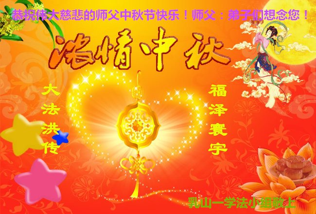 中秋節是個團圓的日子,中國大陸的大法弟子非常想念偉大慈悲的師父!我們學法小組全體大法弟子恭祝慈悲偉大的師父中秋節快樂!感謝師父的無量慈悲!我們一定不辜負師尊的慈悲苦度,多學法,修好自己,救度眾生。師父,您辛苦了!