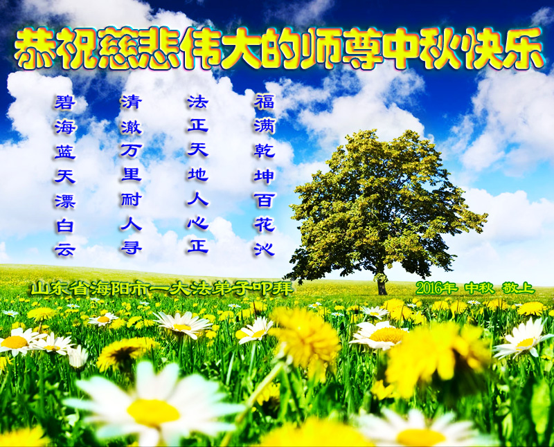 又是一個中秋節,盼師心情言難說,只有在此問師好,感恩師父慈悲度,以法為師再精進,找回修煉如初感,真學實修報師恩,不管環境怎麼變,有師有法心不動,我們不是來當人,助師正法救眾生,眾生得救是心願,快完誓約與重託,了萬古願在眼前,等師父來領我回家,法正人間真相顯,佛光普照新紀元,大穹處處都是春,返本歸真新家園。
