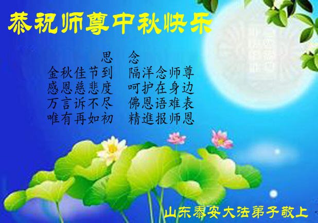 山東泰安大法弟子恭祝師尊中秋快樂!