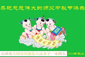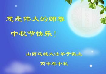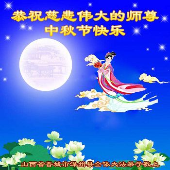 在這闔家團聚歡度良辰之時,弟子們懷著最最崇敬的心情遙拜師尊。慈悲、偉大的師尊啊!弟子們想念您!我們用盡人間的語言也無法表達對師尊的感激,用甚麼也無法報答師尊的救度之恩。在這正法走到最後的階段,我們唯有按照師尊的教導和要求,找回並保持修煉如初,學好法,做好三件事,多救人。讓師尊多一份欣慰,少一份操勞。完成誓約,圓滿隨師還。