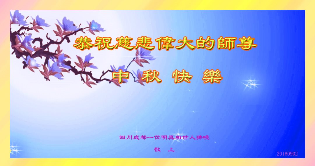中秋來臨之際,在正法的最後時刻,我們一定謹記師尊的教誨,以法為師,紮紮實實的做好師父交代的三件事,在修好自己的同時,多救人,兌現自己的史前誓約,讓師父少操心,堅修大法到底,跟師父回家。