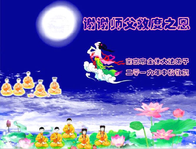 江蘇省南京全體大法弟子謝謝師父救度之恩!恭祝師尊中秋快樂!