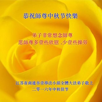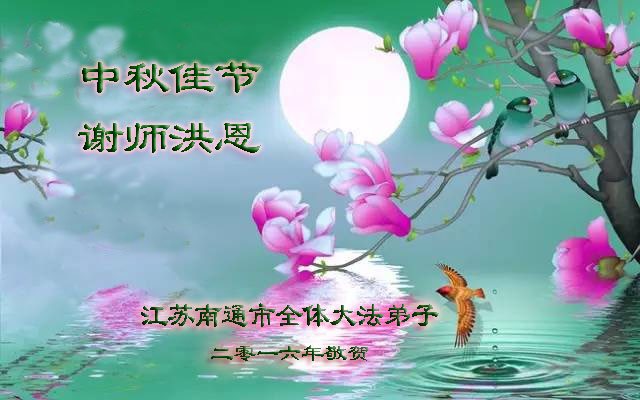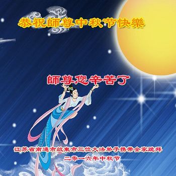 江蘇南通市崇川區大法弟子恭祝慈悲偉大的師尊2016年中秋節快樂!