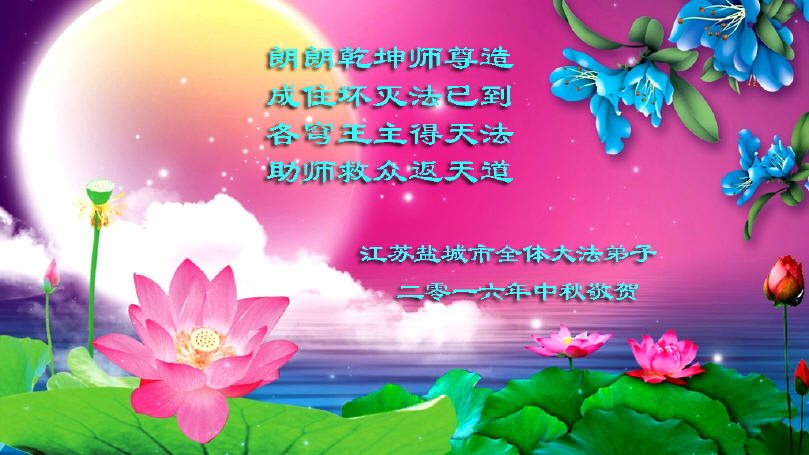 江蘇鹽城市全體大法弟子恭祝師尊中秋快樂!