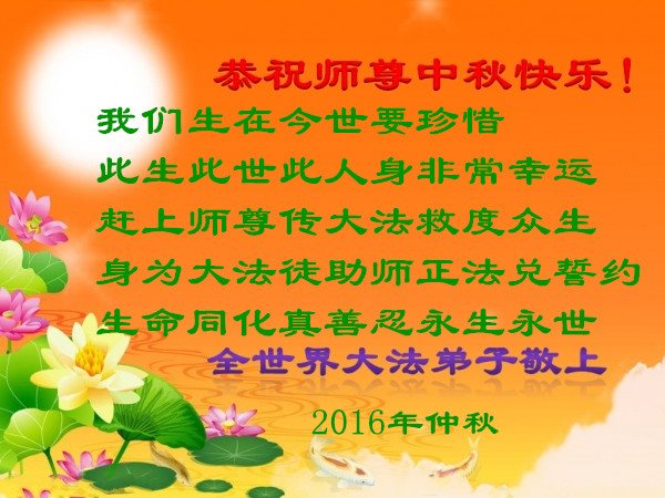 在此,我也代表我的姐姐同修和妹妹同修以及我的所有家人恭祝師尊中秋快樂!