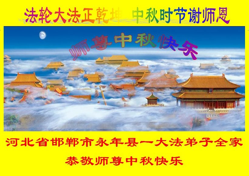 河北省邯鄲市永年縣一大法弟子全家恭敬師尊2016中秋快樂!
