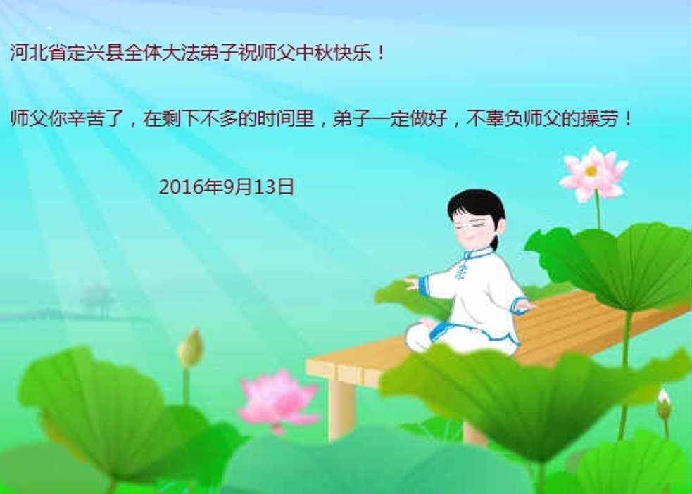 河北省定縣全體大法弟子恭祝師父中秋快樂!
