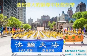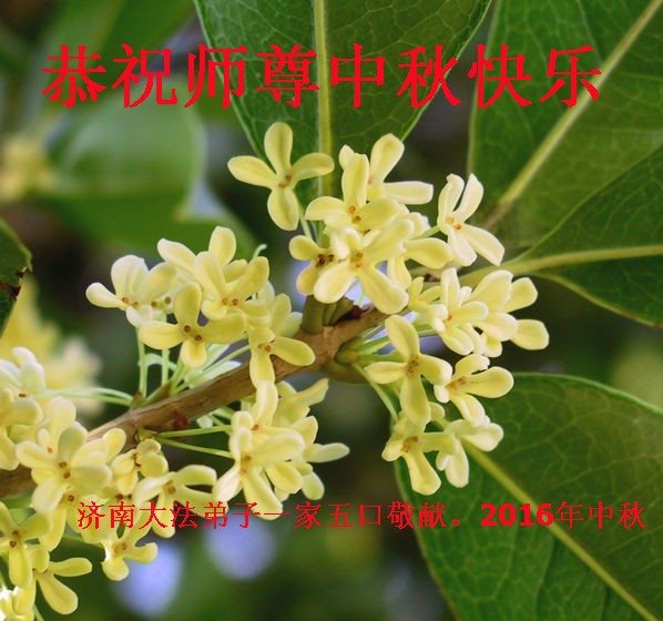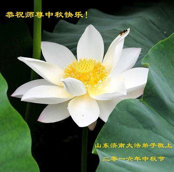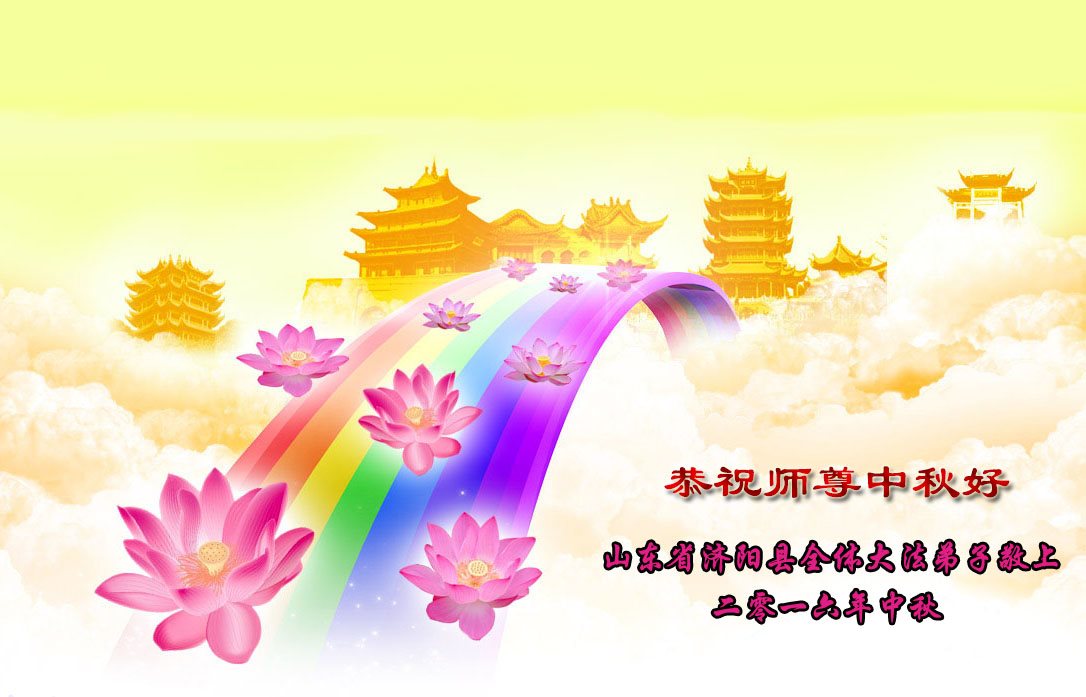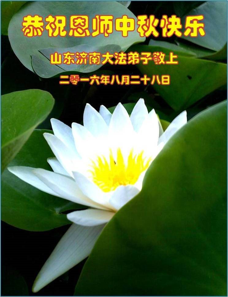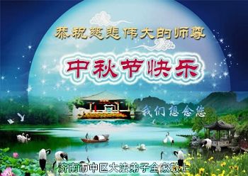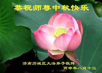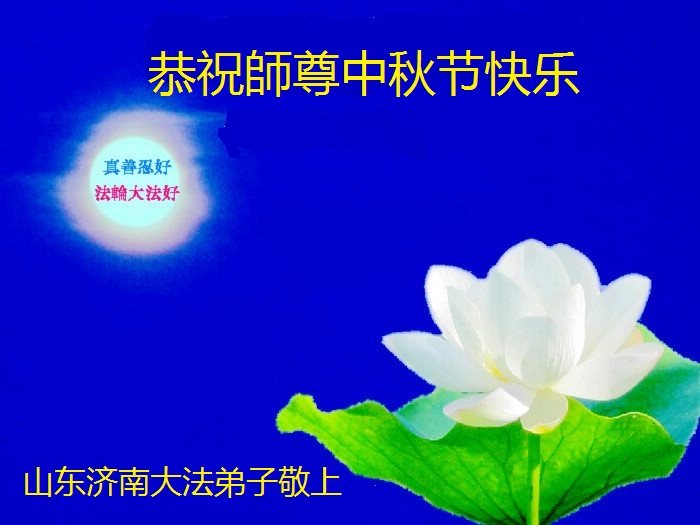 山東省濟南市大法弟子恭祝師尊中秋節快樂!並代表所有明白真相、認同大法的世人恭祝慈悲偉大的師尊節日快樂!師尊您為了弟子和蒼穹眾生辛苦了!