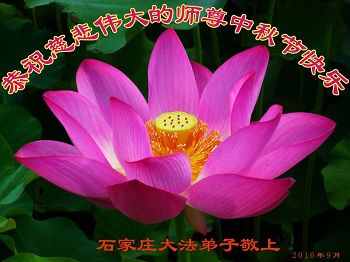 在中秋節即將到來之時,我向師父說一聲:恭祝師父中秋節快樂!請師父放心,在正法最後的時間裏,弟子更要聽師父的話,抓緊時間救更多的人,做一個真修的讓師父放心的大法弟子,感恩師父的苦度。
