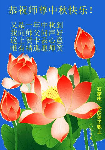 師父您好!師父辛苦了!弟子含熱淚向師父問好!又一年的中秋節要到了,弟子感激師父,二十年來師父為弟子洗淨洗淨再洗淨,給了弟子及全家人太多太多,弟子無法用語言表達師父的洪恩浩蕩,弟子唯有在剩下的不多的時間裏,努力做好三件事,完成自己的歷史使命,跟師父回家。
