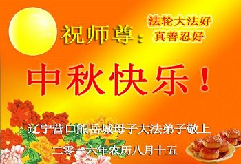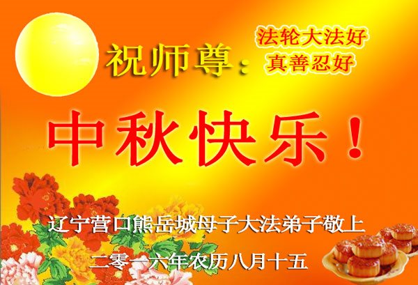 遼寧省丹東大法弟子恭祝師尊中秋節快樂!