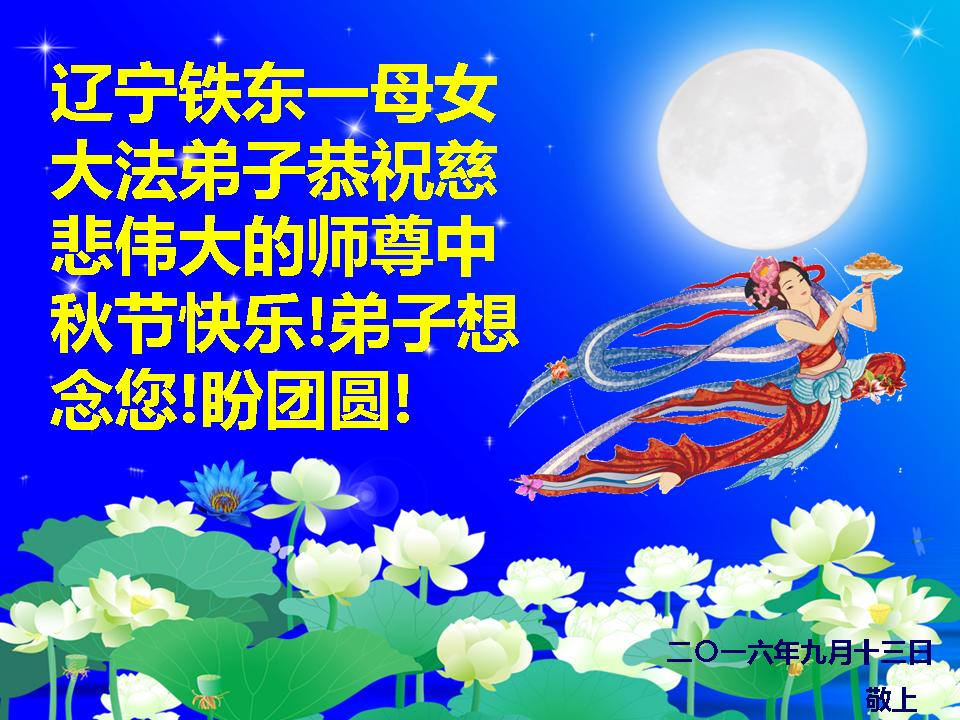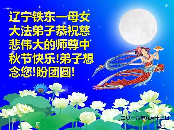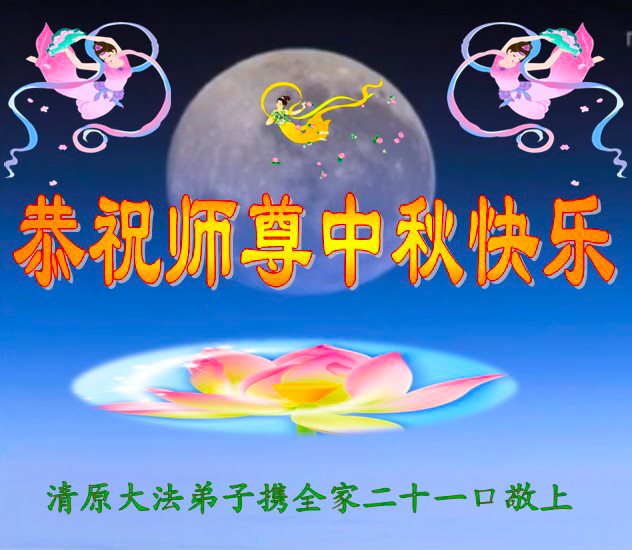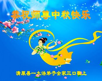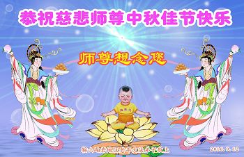 我和我家的兩位小同修及我的同修母親,恭祝慈悲偉大的師尊中秋節快樂!師父辛苦了!弟子們想念您!
