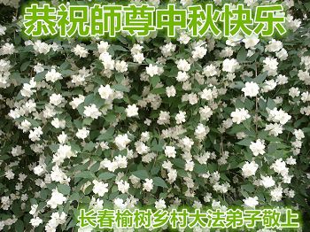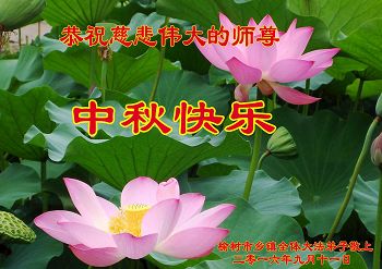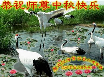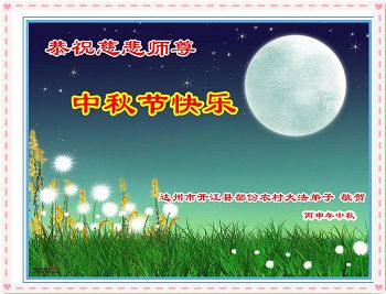 中秋節又到了,俗話說的好;每逢佳節倍思親。我們全體大陸大法弟子每到節日之時就更想您了。在這裏,我代表遼寧撫順縣一鎮全體農村大法弟子向偉大的師尊問候一聲:師尊,中秋節快樂!同時,我還要向師尊保證修好我自己,帶好我這地區的同修,穩健紮實的做好助師正法之事! 遼寧