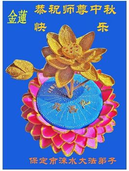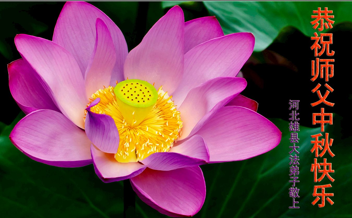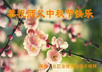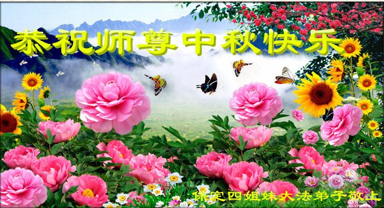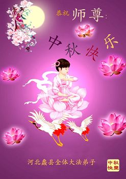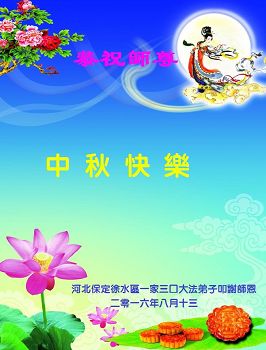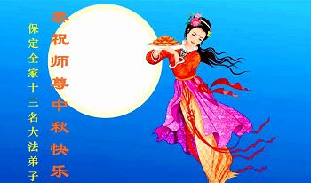 我代表家人、兒子以及八十多歲的老母親,恭祝師父中秋節快樂!感恩師尊十七年來對弟子們的慈悲呵護!我們會在以後在時間裏,多去執著,精進實修救眾生!