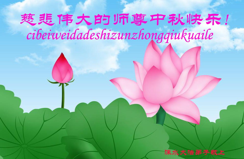 我們小組全體大法弟子感謝師父的慈悲救度,沒有師父的慈悲呵護,我們不可能還在人世間,更不可能履行自己的使命助師救度眾生。弟子感恩慈悲偉大的師父。祝師父中秋快樂!