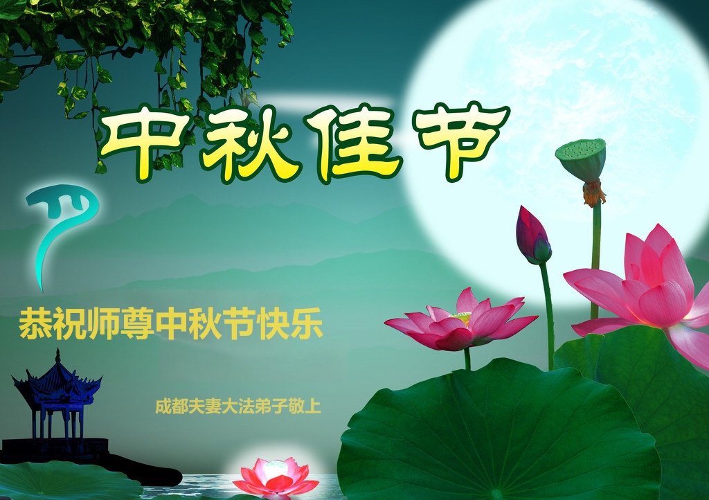 四川省成都夫妻大法弟子恭祝師尊中秋快樂!