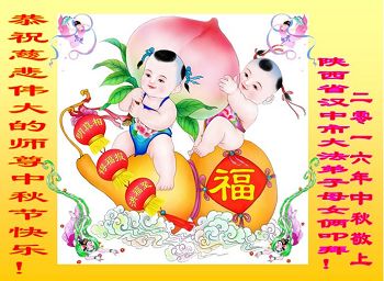 四川省成都、溫江區大法弟子的兒子中秋向偉大的師父問候!祝師父中秋節快樂!