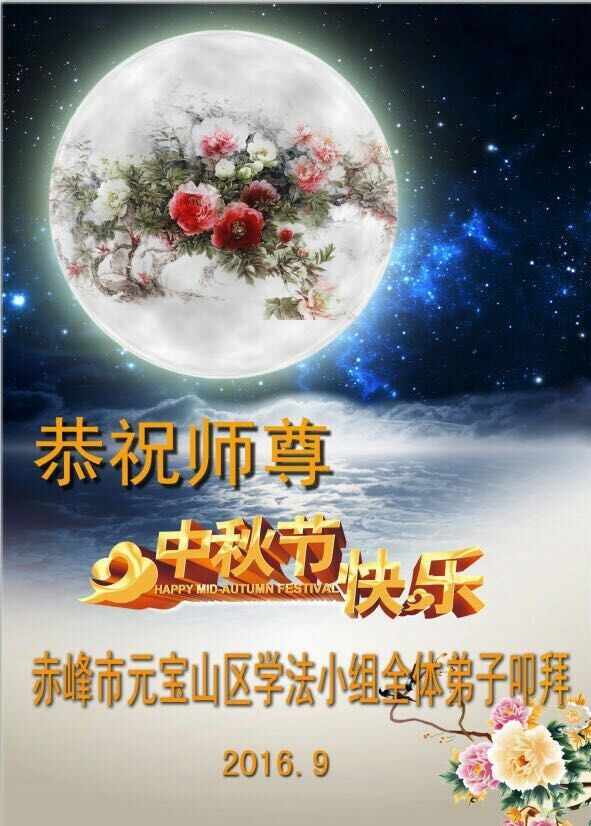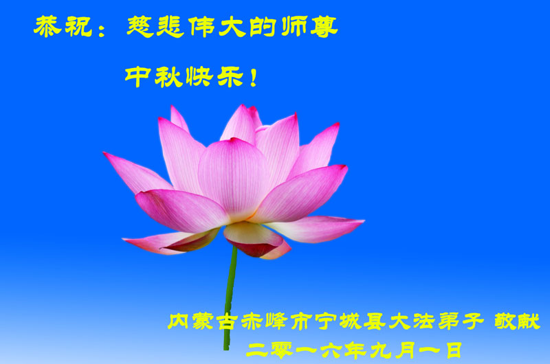 我們懷著無比崇敬的心情敬祝慈悲偉大的師父2016年中秋節快樂!萬事如意!我們要珍惜大法給我們留下的時間,珍惜師父和我們的緣份,完成大法賦予我們的歷史使命,努力做好三件事,早日見到師父。