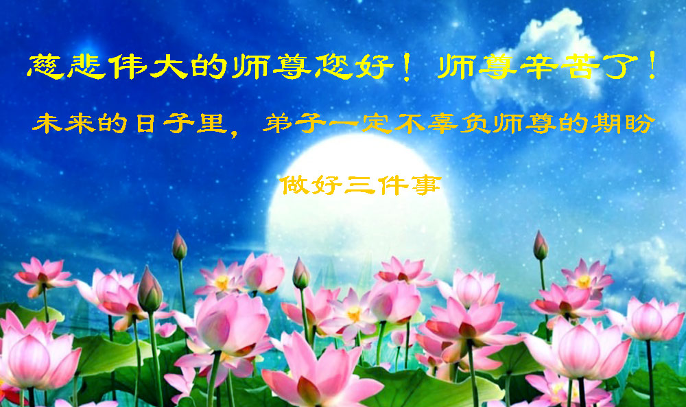 弟子無法用語言表述對師父慈悲苦度的感恩。自修煉一路走來,無不是在師尊的慈悲呵護和不斷點化下才走到了今天。在這個傳統歡慶的日子裏,弟子深知師父您牽掛著您的每一個弟子,弟子只有加倍做好三件事,喚醒身邊人,讓師父您能夠多一些欣慰,少一份操心。
