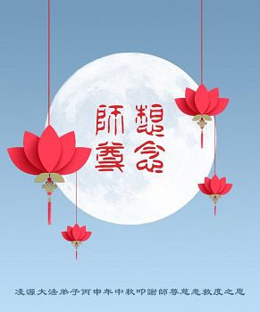 隨師正法十七載,感恩淚水心中淌,多少大難師尊擋,多少業債師尊還,今又中秋佳節到遠隔重洋拜師尊,大陸弟子想念您,隔洋捎去心裏話,為使師尊多欣慰,正法已到後時刻,以法為師實修己,堅定大法志不移,努力做好三件事,完成使命報恩師。