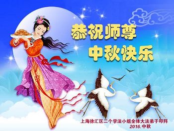 我們二個學法小組全體大法弟子懷著無限崇敬的心向慈悲偉大的師尊深深敬拜!祝師父中秋節快樂!師父辛苦了!我們一定在最後的日子裏,靜心學好法,抓緊多救人,精進再精進,不負師望,跟隨師父回家!