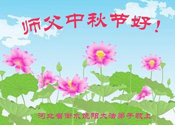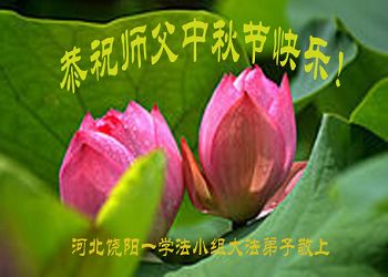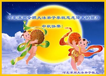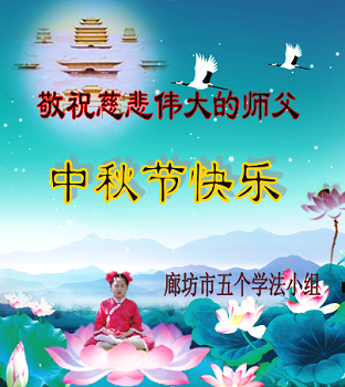 我們是河北省廊坊市某學法組的大法弟子,值此中秋佳節之際,我們恭祝偉大的師尊中秋節愉快!我們決心在剩餘不多的正法時期內,精進不停,努力做好三件事,圓滿隨師還。