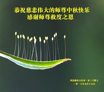 每逢佳節倍思親,師父就是我們的親人。用盡人類的語言也訴說不完我們心底對師父的感恩!在此敬祝師尊中秋節快樂!盼望著重逢的那一天。我們一定能走好最後的路,請師尊放心。
