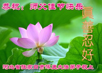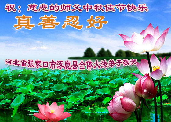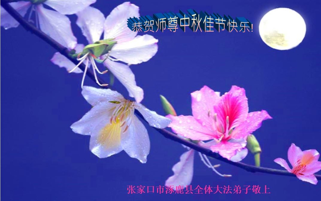 慈悲偉大的師尊好!在這月明月圓的日子裏,我們河北省張家口市涿鹿縣全體大法弟子都在思念師父,盼望師父早日回來和弟子們團聚!我們在師尊無量承受的時間裏,抓緊修好自己,學好法,做好三件事,多救人。涿鹿縣全體大法弟子敬拜!