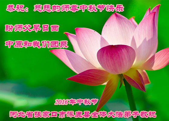全體河北省邯鄲市臨漳縣大法弟子祝您二零一六年中秋快樂!盼望早日親見師尊,眾生都得救度。