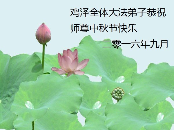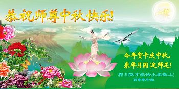 慈悲偉大的師尊您好!您辛苦了, 您對眾生的慈悲苦度我們無法用語言表達。我代表我們大法弟子學法小組恭祝師尊中秋快樂!在這蒼宇重組,宇宙更新的時刻,我們只有時時刻刻信師信法用大法要求自己,做好三件事,修去所有人心和執著,不辜負師尊的囑託,圓滿隨師還。