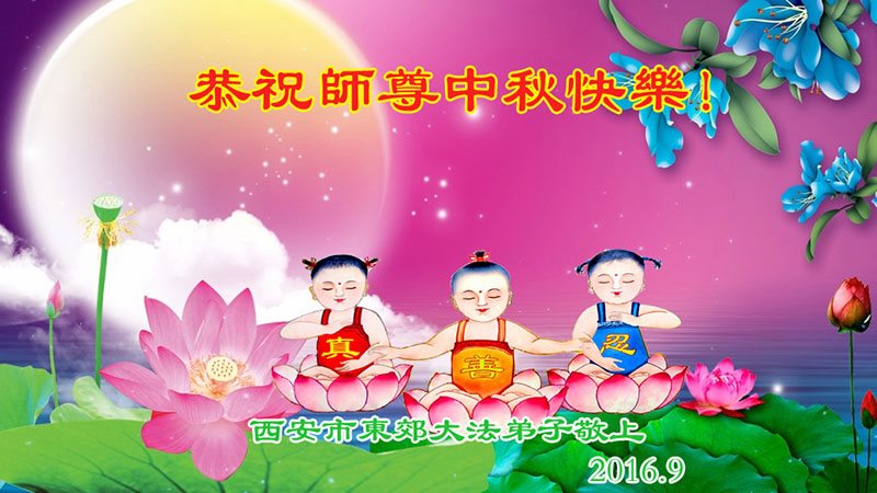 恭祝慈悲偉大的師尊中秋快樂!弟子會嚴格實修自己,認真做好三件事。