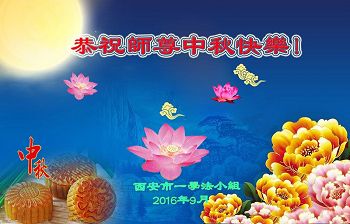 我們學法小組全體大法弟子恭祝師尊中秋快樂!望師父放心,我們努力做好三件事,比學比修,走好最後的修煉路。