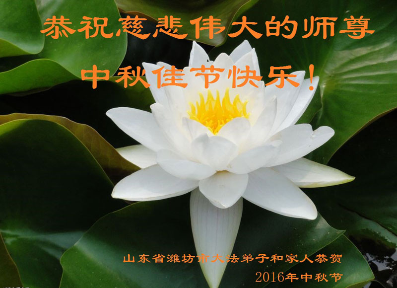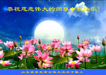 尊敬的師父您好! 時間過的真快,轉眼二零一六年中秋節即將到來,至此弟子衷心祝願恩師中秋節快樂!弟子在修煉路上走過了二十年,二十年來在恩師的慈悲呵護下,闖過了每一關每一難,努力按照師父的要求做好三件事,向內找修自己,但是還存在著許多人心的執著,名利情去掉一層又翻出一層。在今後有限的修煉時間裏,決定去掉一切人心,做一名純淨的大法弟子,跟恩師回家。