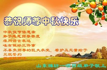 師尊您好!中秋節即將到來,遙祝師尊節日快樂!日久天長修人心,修煉十幾到如今。弟子越修越堅定,緊跟師尊正法行。決心修去為己心,助師正法救世人。完成使命兌誓約,跟著師尊回家園。
