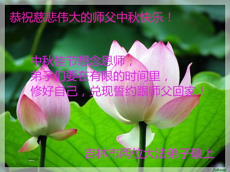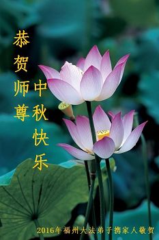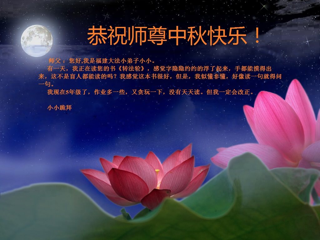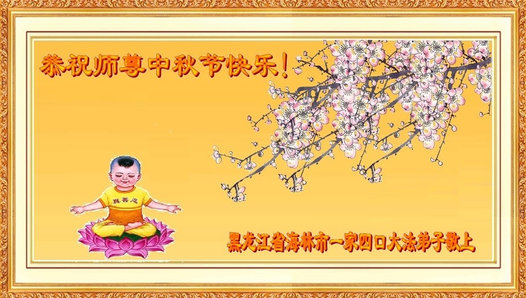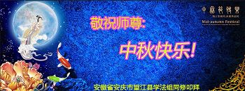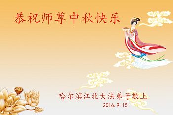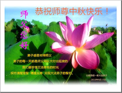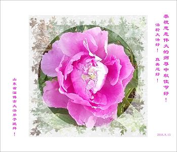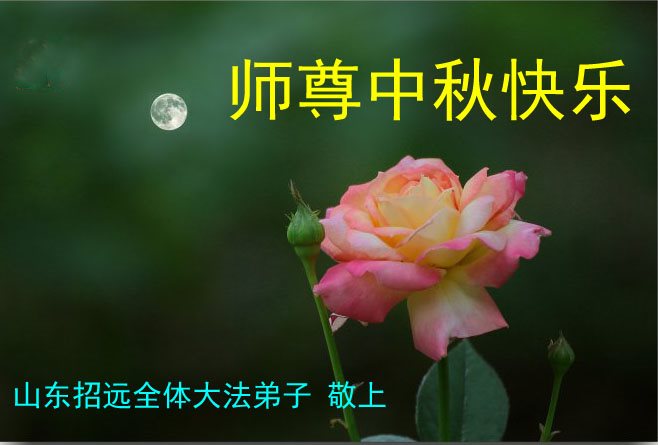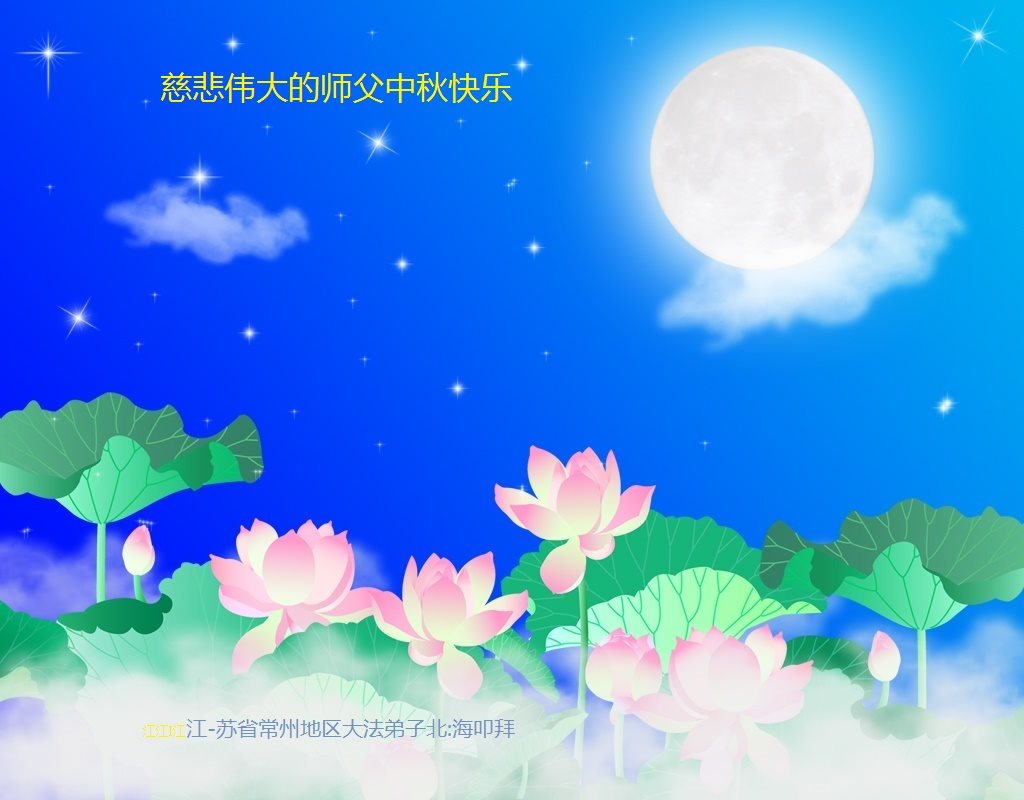 中秋節向師父問好!在過去的日子裏,弟子有時精進,有時懈怠,有許多執著心沒修去,有不良習慣沒去掉,弟子愧對師尊。師尊用巨大的付出,巨大的承受換來的正法時間弟子今後一定珍惜,決心修掉執著心,去掉不良嗜好,勇猛精進,跟上正法進程,在所剩不多的珍貴時間裏多救人,完成師父安排的正法修煉之路。