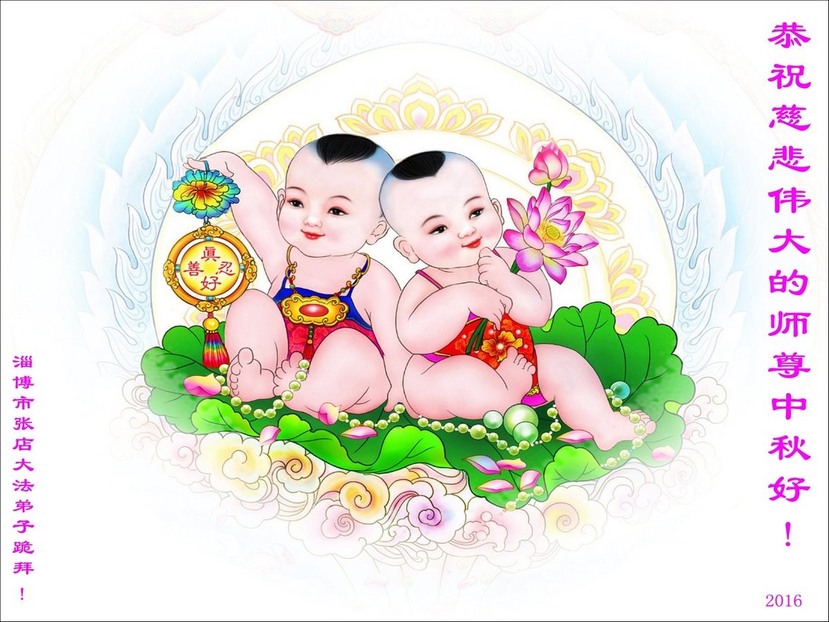 山東省淄博市張店區大法弟子恭祝慈悲偉大的師尊中秋節吉祥!