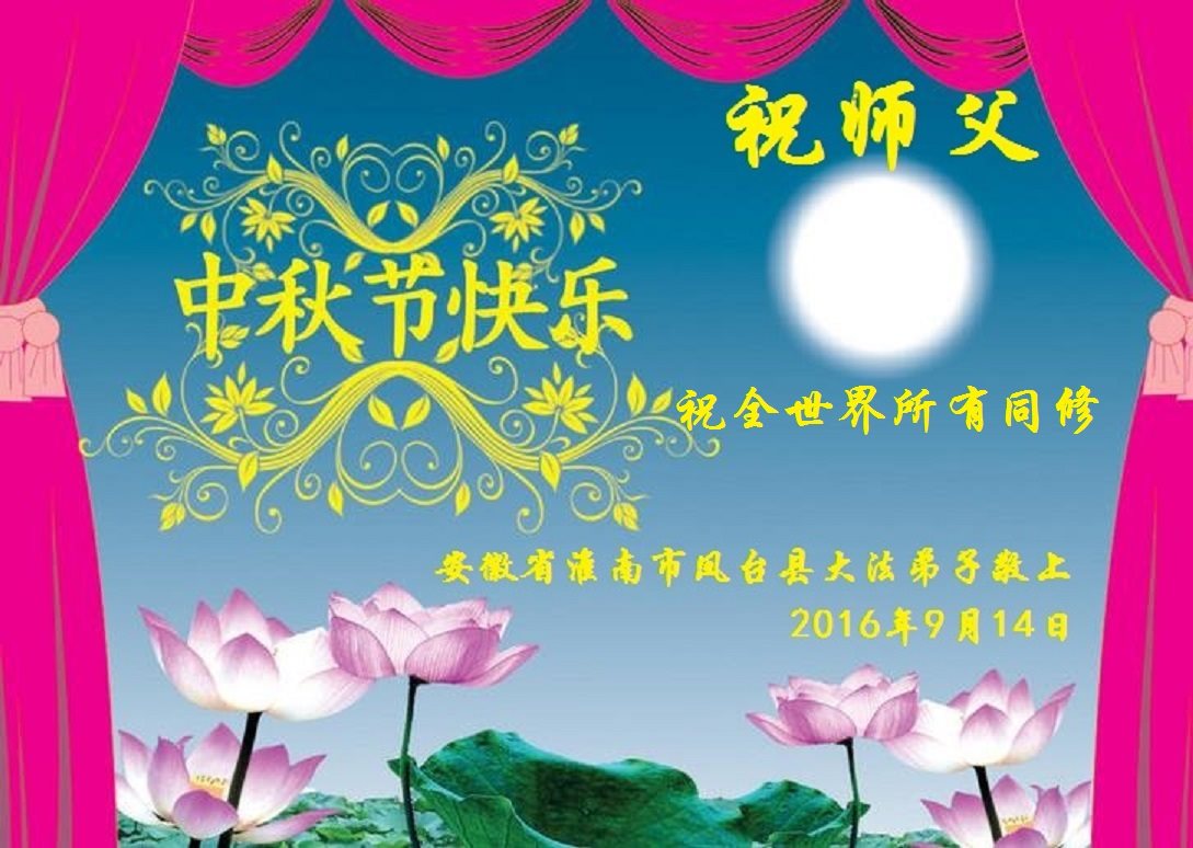 每逢佳節倍思親!師尊是弟子最思念的親人!安徽省穎上縣全體大法弟子恭祝慈悲偉大的師尊中秋佳節快樂!