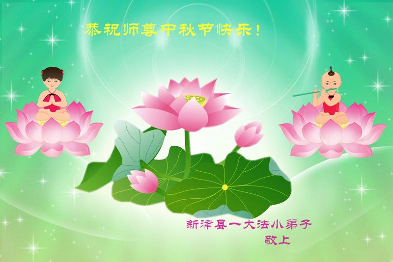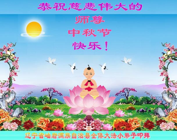 我們全家及親戚五位大法弟子和兩位小弟子祝願師尊中秋節日快樂!我們想念師父,師父辛苦了。