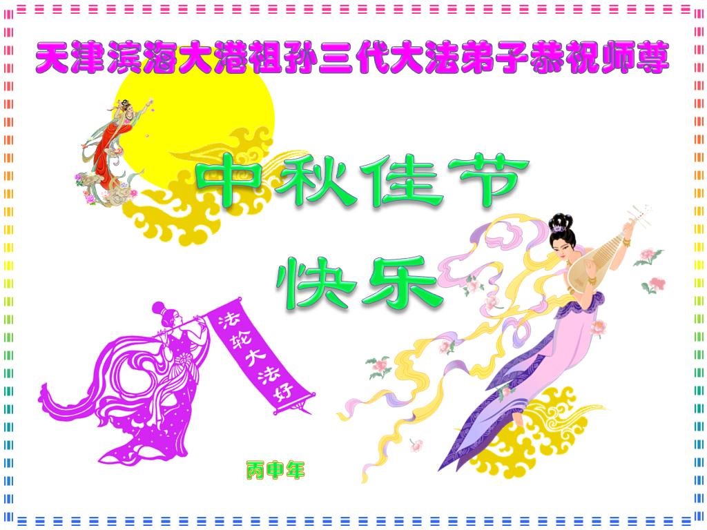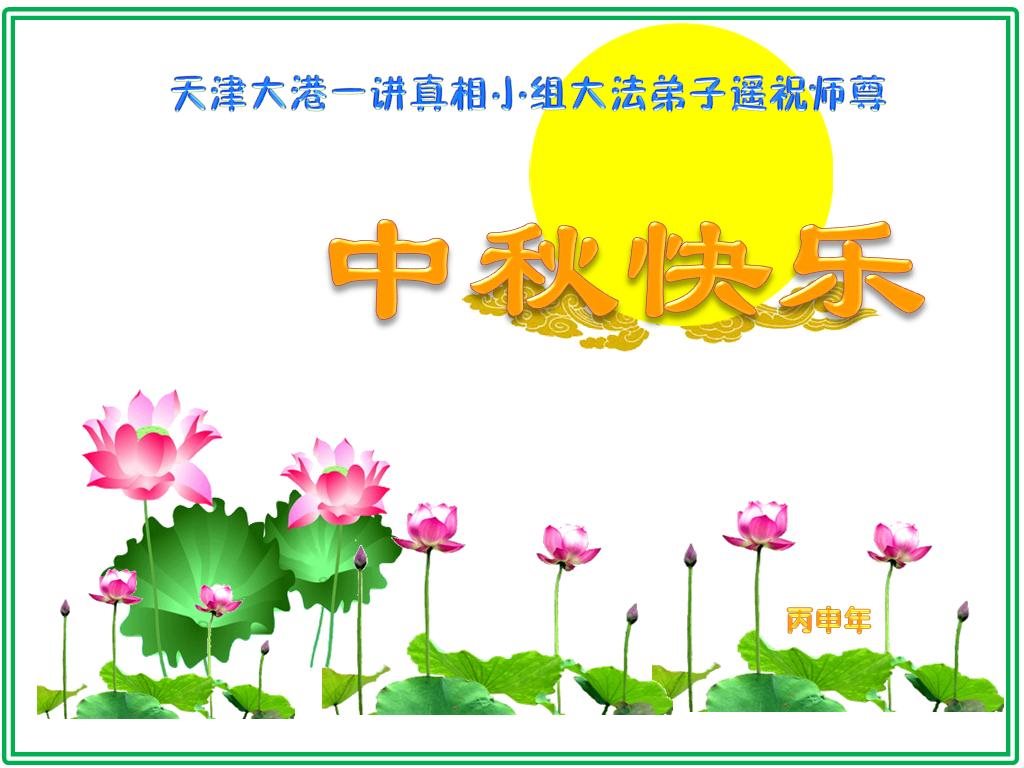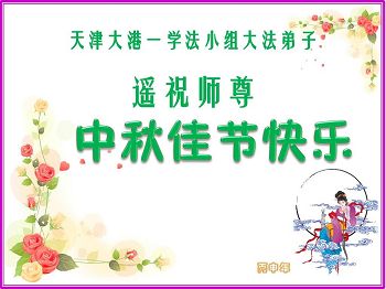 天津濱海新區大港一學法小組大法弟子向慈悲偉大的師尊問好,恭祝師尊中秋佳節快樂!
