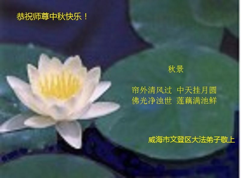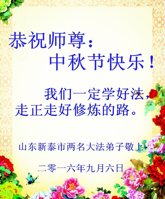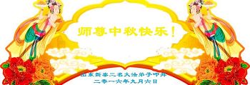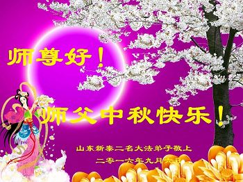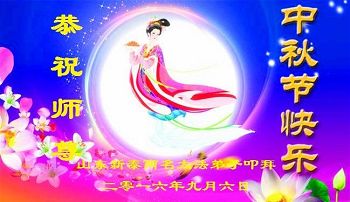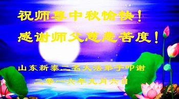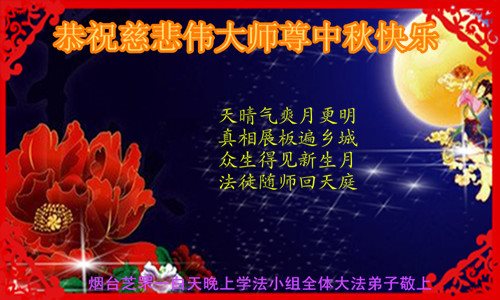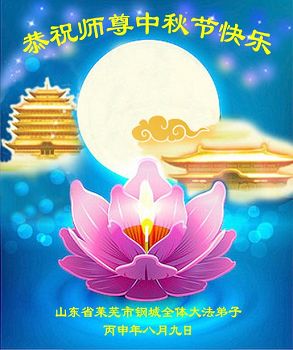 在這中秋佳節之際,招遠市8名大法弟子向偉大的師尊問好。師尊辛苦了。我們會認真學法,比學比修,查找不足,做好三件事。請師尊放心。
