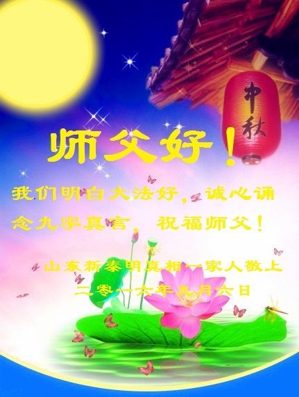 山東泰安大法弟子恭祝慈悲。偉大的師尊中秋節快樂!。弟子做好三件事跟師尊圓滿回家。