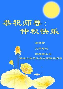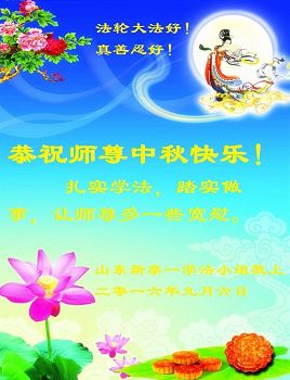 山東萊陽全體大法弟子恭祝師尊中秋快樂!弟子盼望不辱使命,早日和師尊團圓。