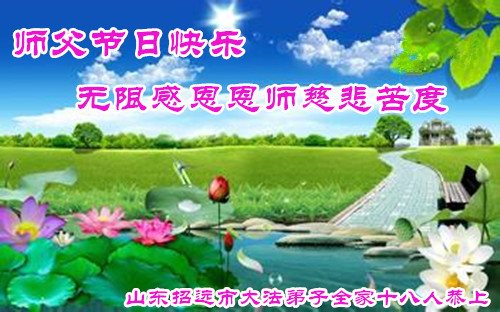 山東聊城一家人大法弟子恭祝慈悲偉大的師尊中秋節快樂!叩謝師尊!