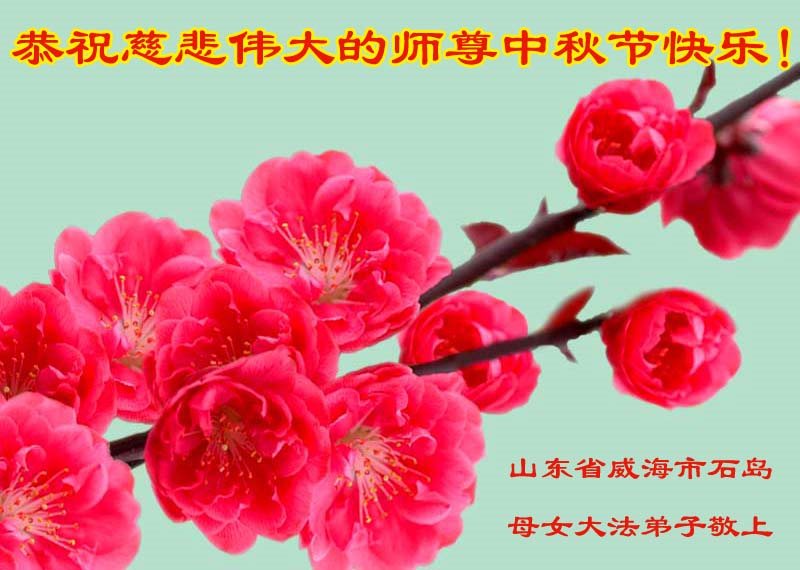 山東省威海市石島母女大法弟子恭祝慈悲偉大的師尊中秋節快樂!