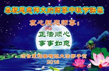 山東省煙台市蓬萊市一學法小組大法弟子恭祝慈悲偉大的師尊中秋快樂!