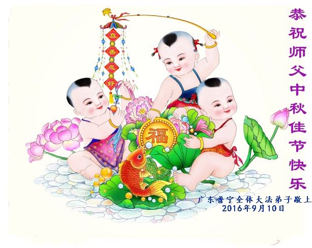 向慈悲的師父問好,祝師父中秋快樂!無比感恩師父的慈悲救度,弟子一定堅定大法修煉,做好三件事,跟師父回家。廣東省汕尾市海豐大法弟子叩拜師尊!