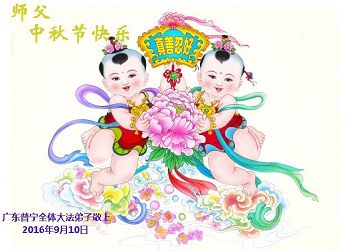 一年一度的中秋節到了,在此恭祝慈悲偉大的師尊中秋節快樂!我們廣東潮州全體大法弟子想念師尊,感謝師尊的慈悲苦度。