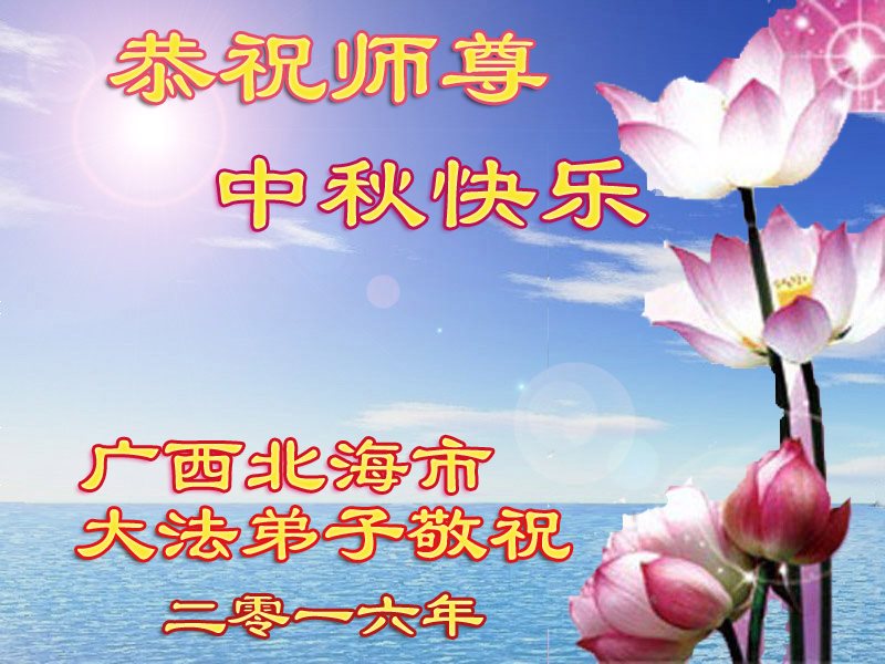 廣西壯族自治區北海市大法弟子恭祝慈悲偉大的師尊中秋佳節快樂!弟子們思念師尊!