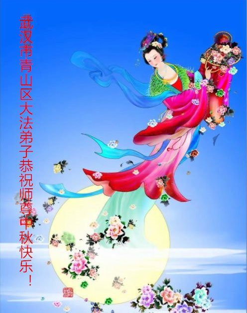 尊敬的師父:您好!祝您中秋節快樂!祝您永遠快樂!感謝您對我們以及對所有眾生的珍惜、愛護和付出的一切,雖然無以言表,但是我們還是想藉這中秋節日之際向您說聲:「師父您辛苦了!謝謝您!」。我們也一定會珍惜這機緣。我們大法弟子會互相鼓勵、互相幫助、共同精進、一起兌現誓約!